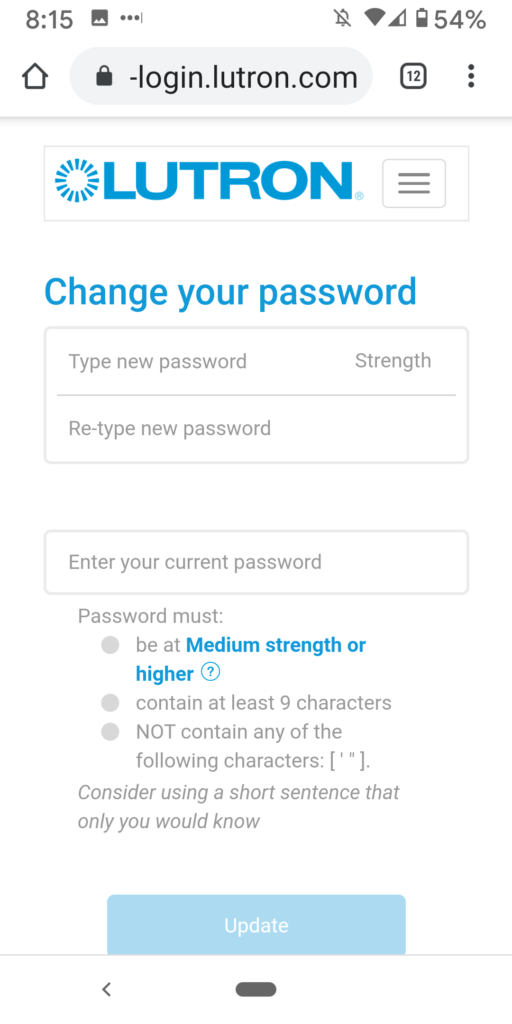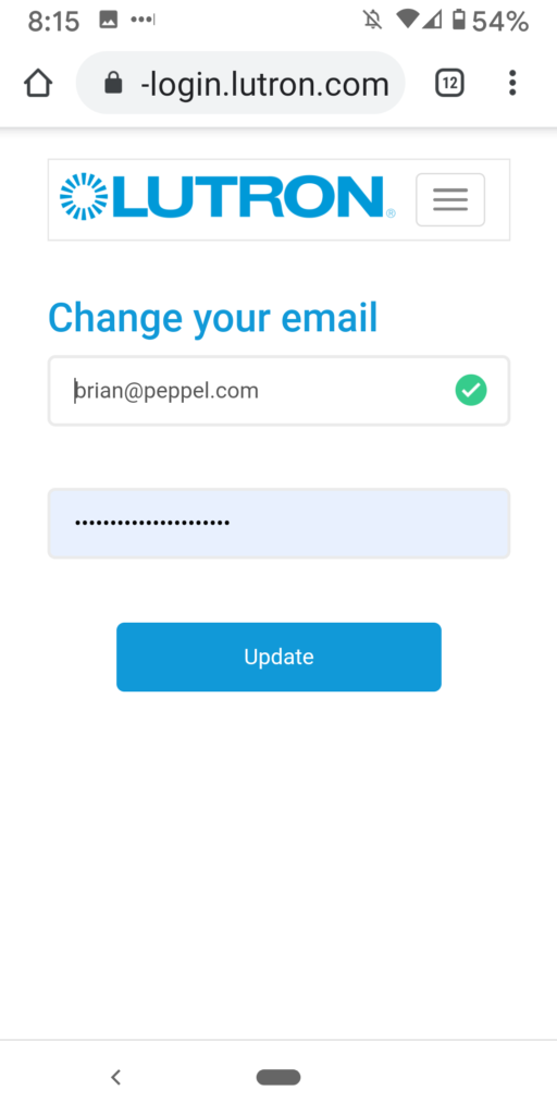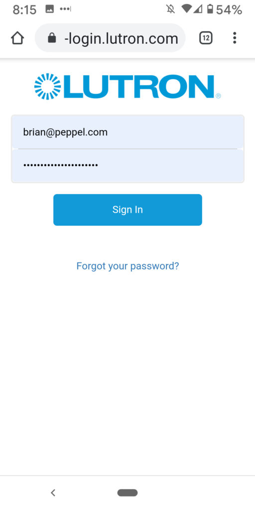 Lutron Caseta App Account Settings