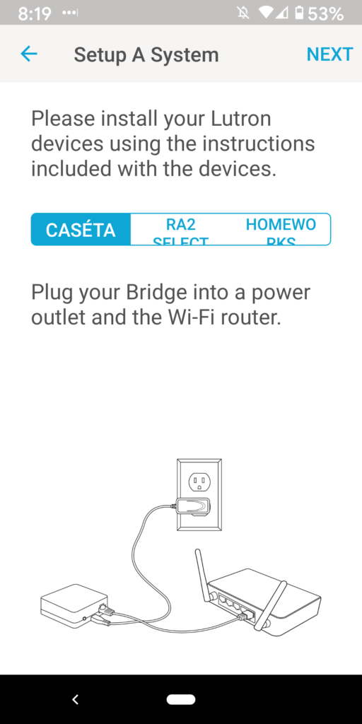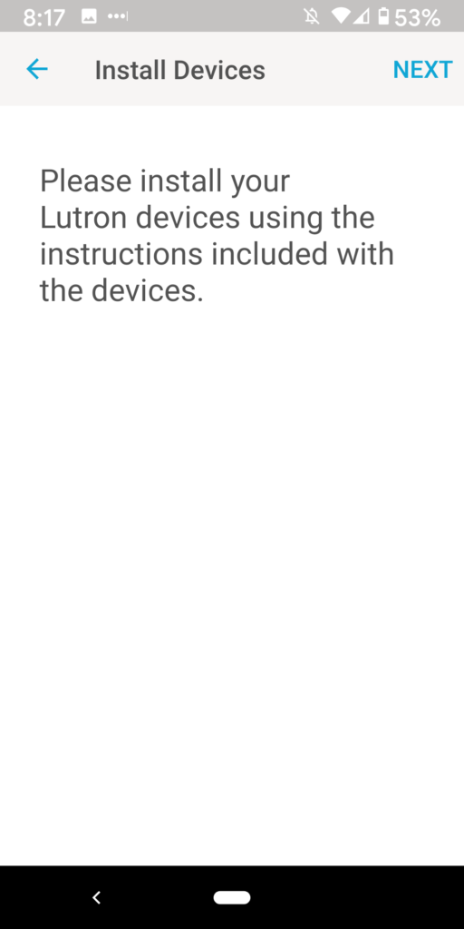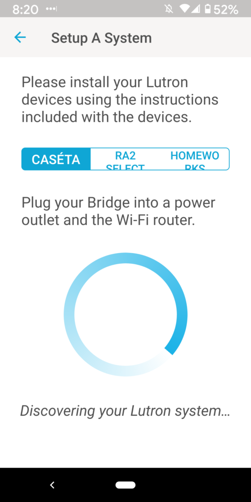 13. You should see the blue wheel below indicating that the bridge is “Discovering your Lutron system”.