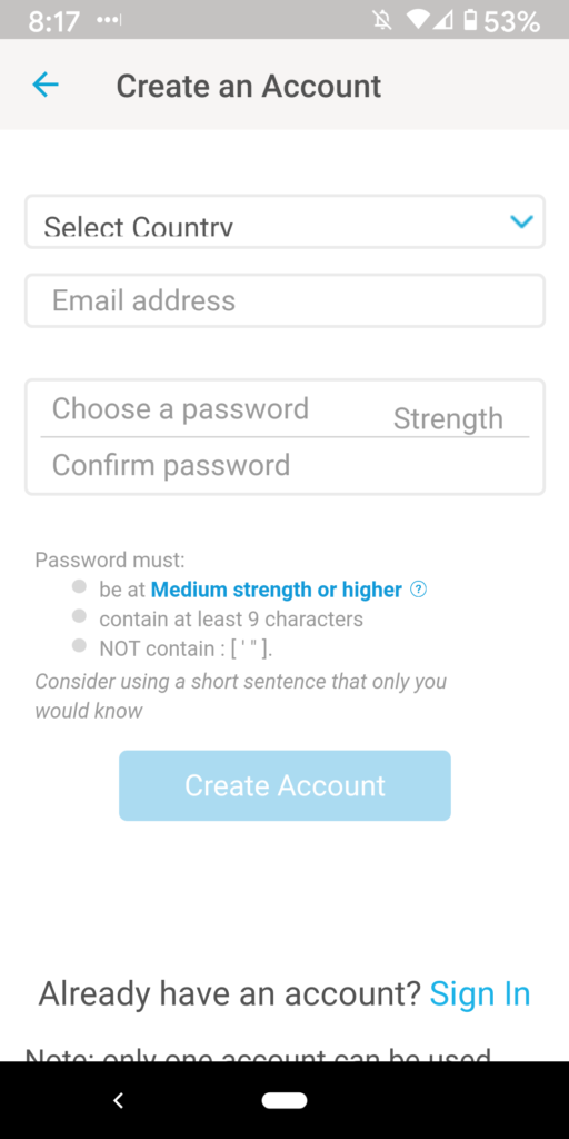 10. Create a new account with the email and password for the new user.