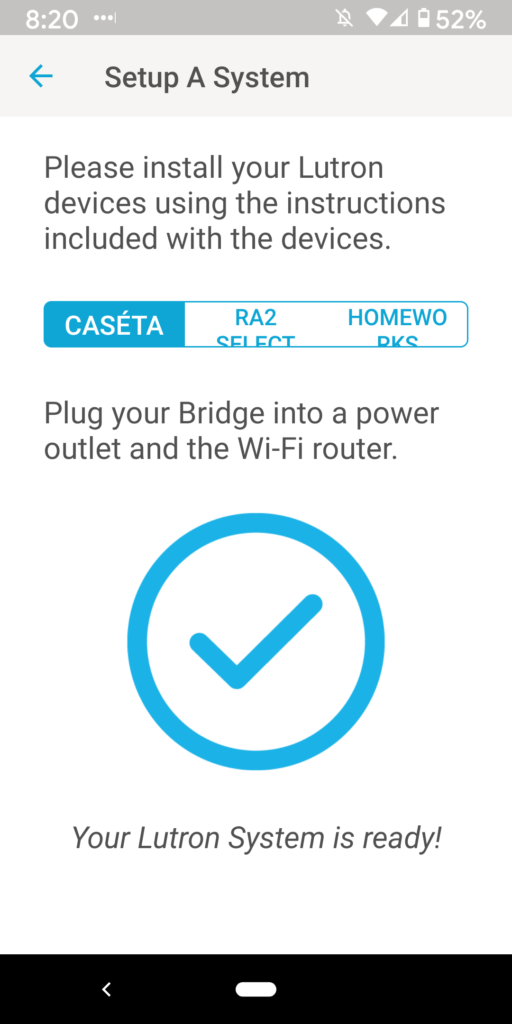 14. The next message should indicate that “Your Lutron System is ready!”